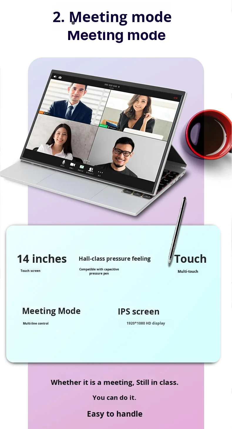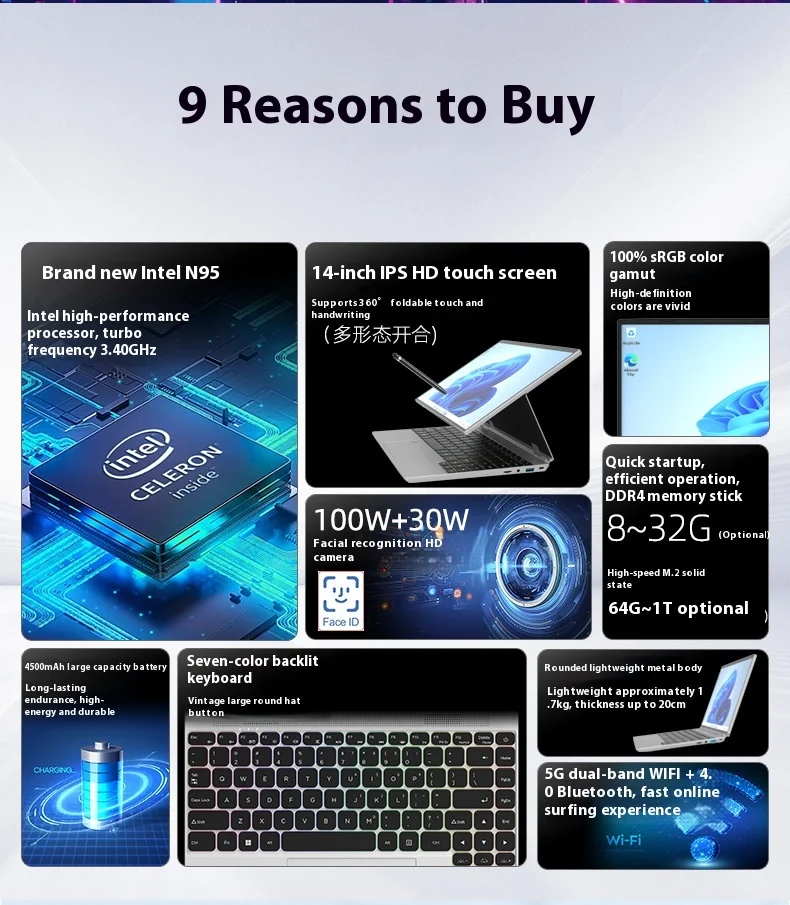 14-Inch Touchscreen 2-in-1 Slim Laptop PC Tablet Intel N95 512G 256G 1TB for Cross-Border Business Office New US Plug Can OEM
