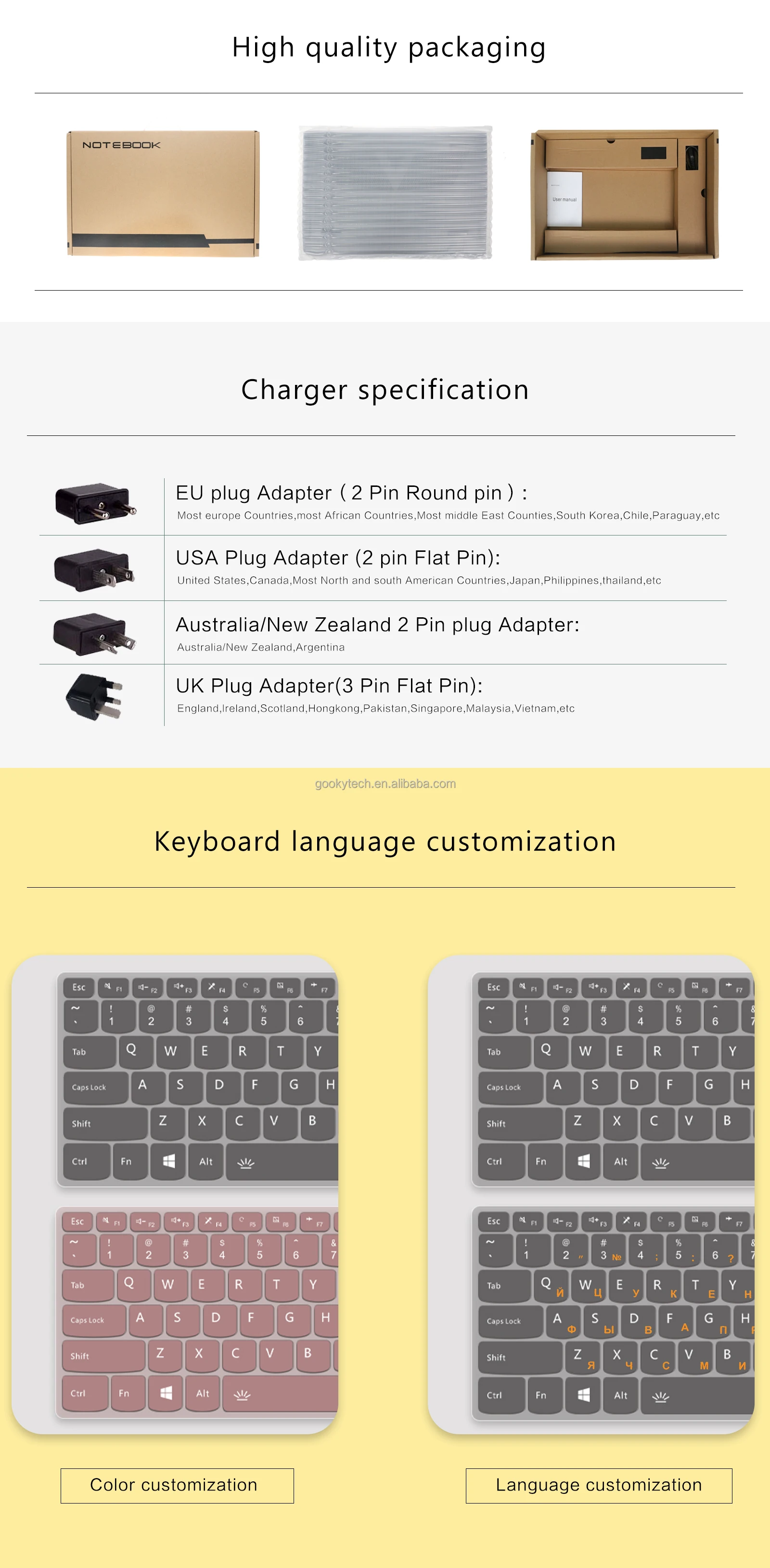 plugs type: US,UK,JP,AU,EU,CN