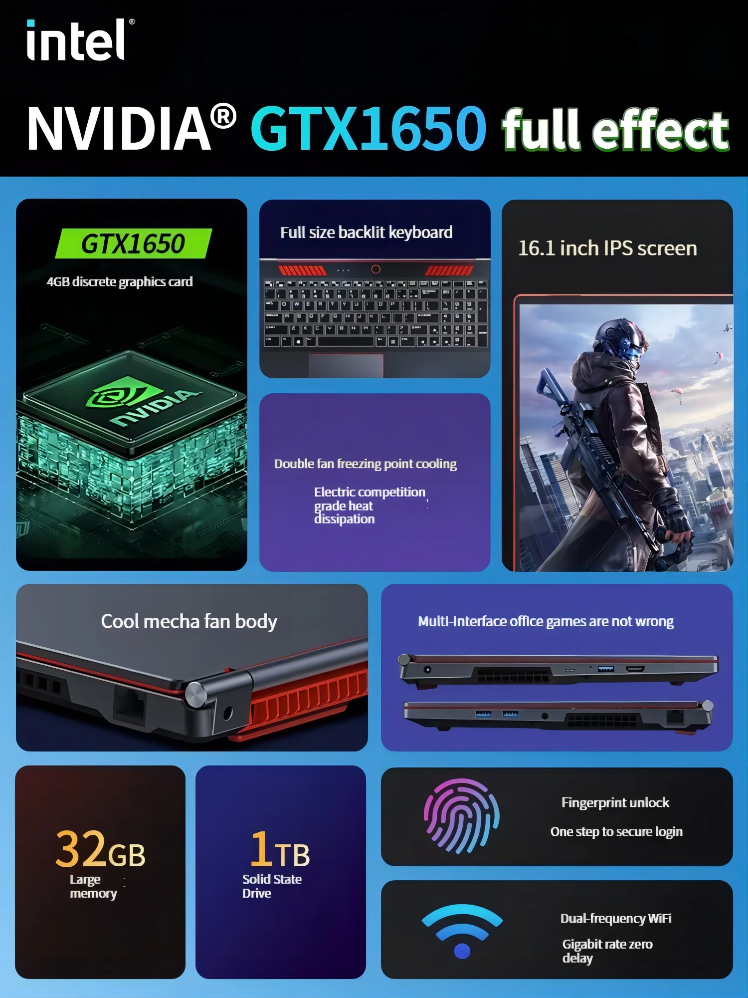 16.1 inch, IPS screen, 144Hz E-sports screen
