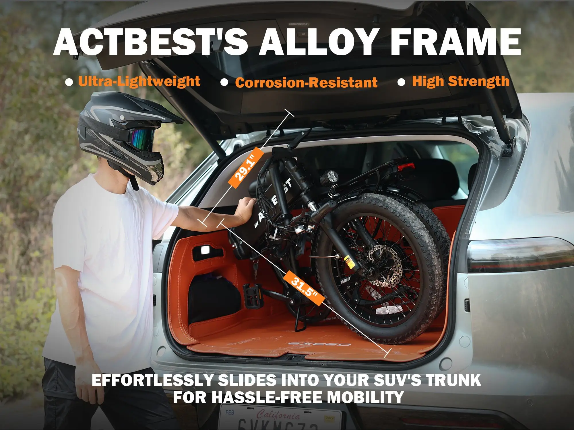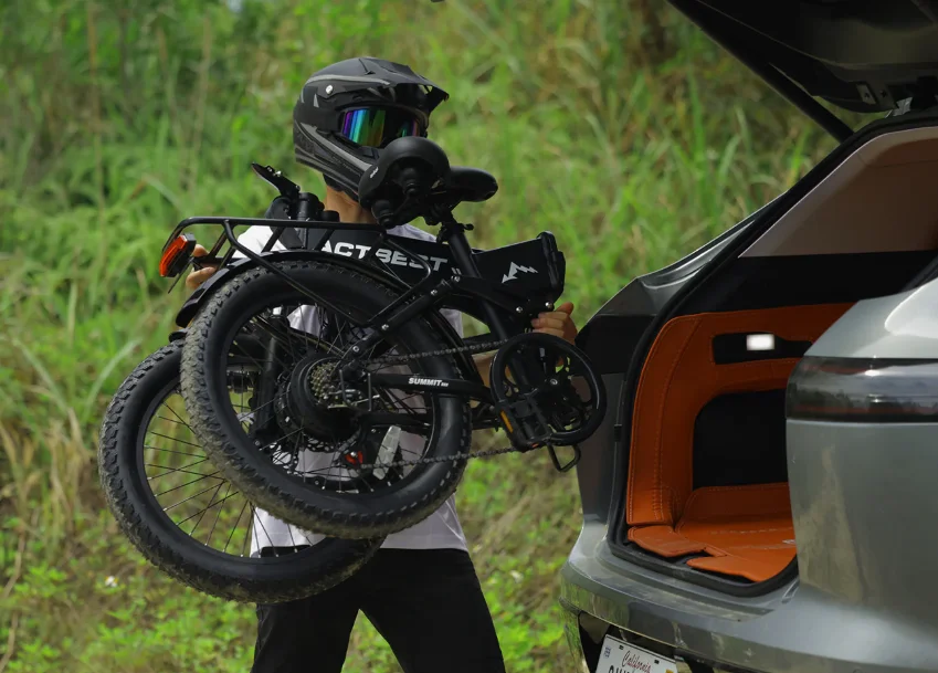 The Summit folding electric bike easily fits into the trunk of your SUV for on-the-go convenience, making it perfect for quick jaunts or long-distance explorations.