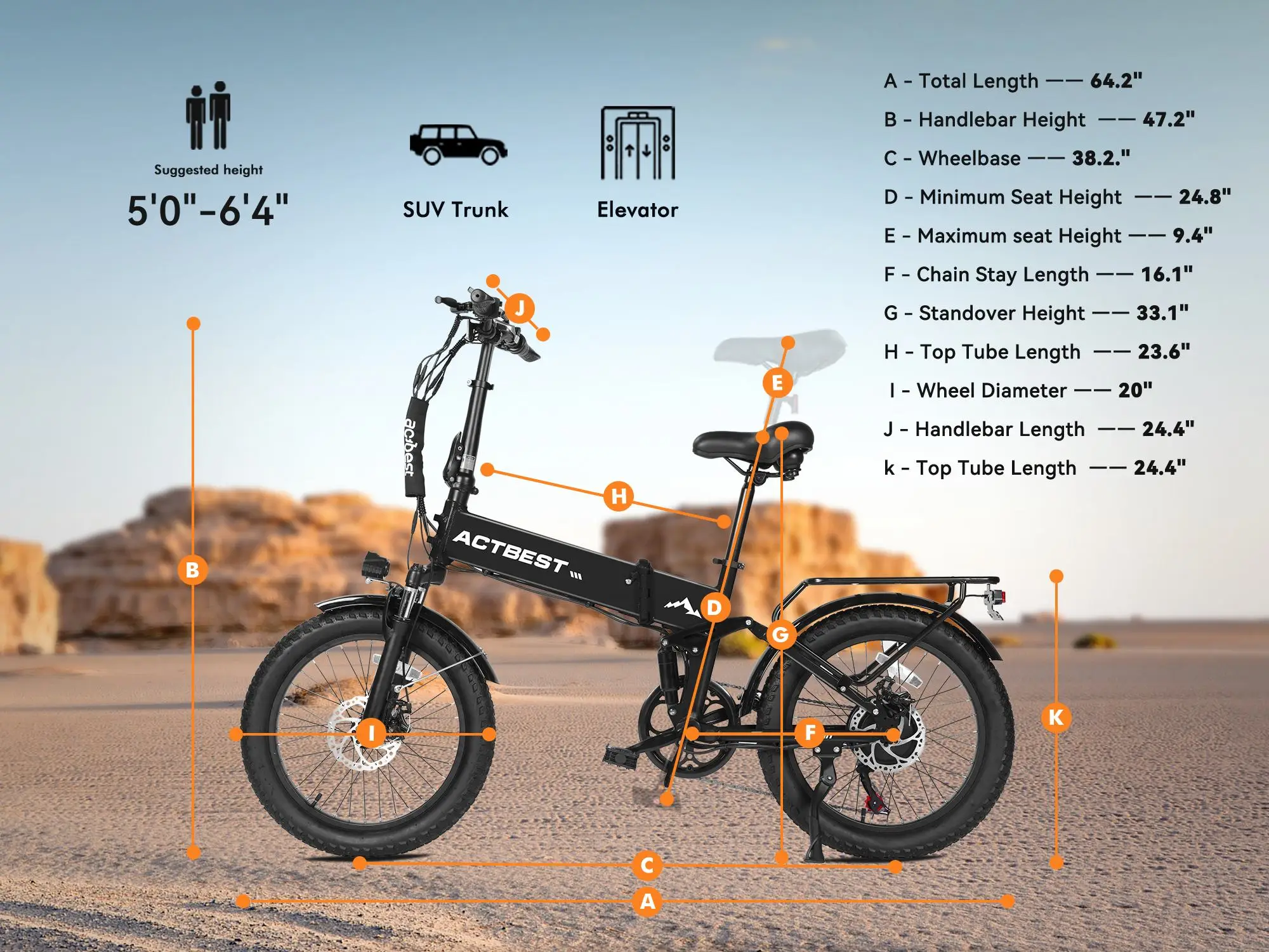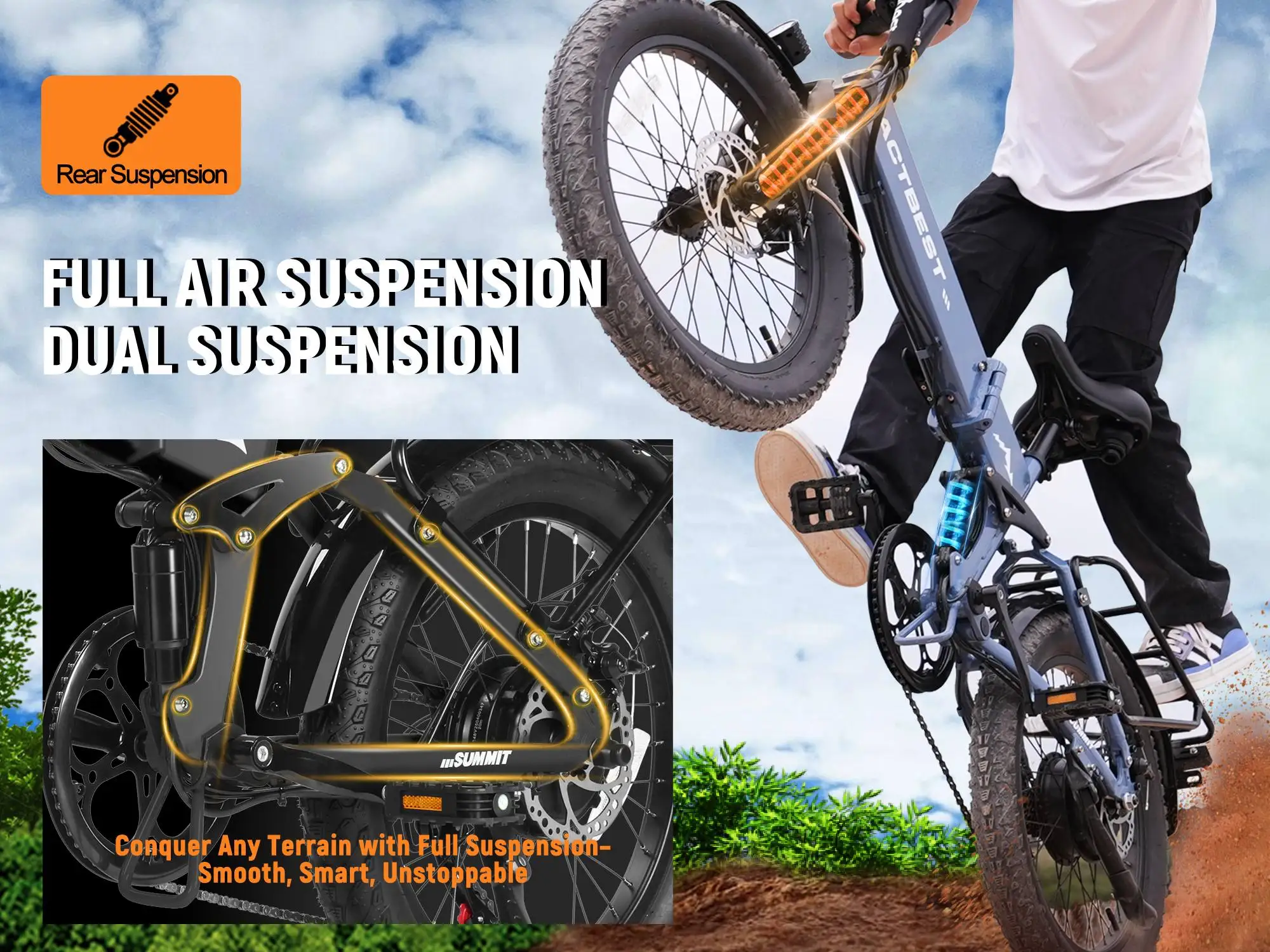 ACTBEST Summit 20 Inch Foldable Aluminum Fat Tire Electric Mountain Bike Ebike for Adults