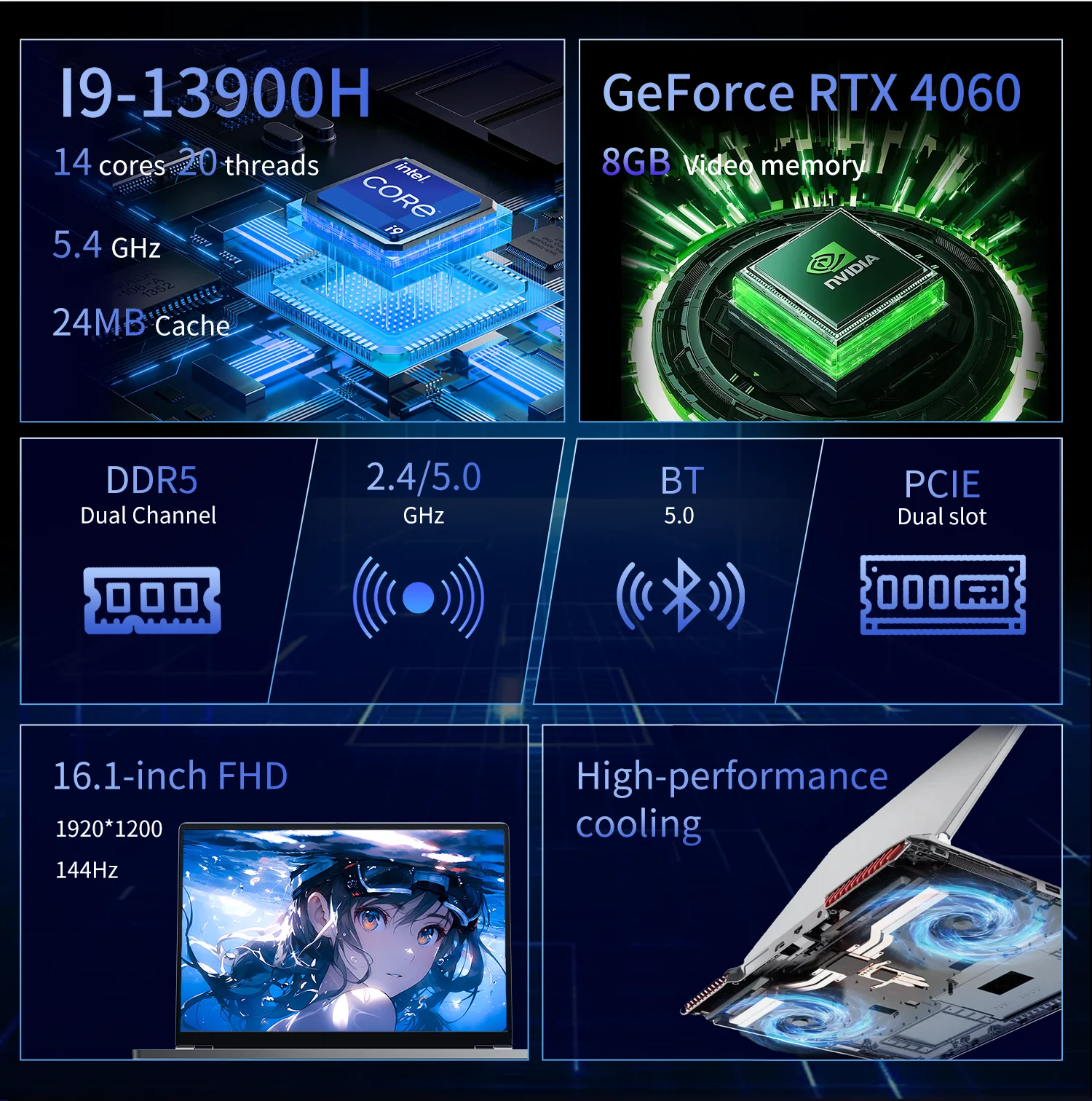 Brand New 16-Inch Gaming Laptop Win 11 Intel 13th Gen Core I9-13900H 16GB RAM 144Hz 16:10 IPS GDDR6 SSD RTX 4060 2.6GHz