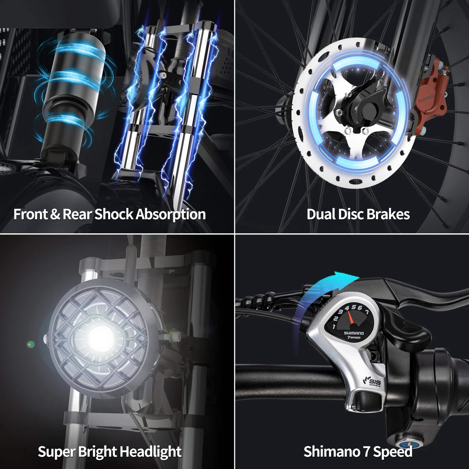 Choose accessories such as shock absorption systems, braking systems, handlebars and seats according to your personal needs. For instance, if you often ride on rough roads, you can choose shock absorbers with better performance. Emphasis is placed on braking performance and it can be upgraded to a disc brake system.