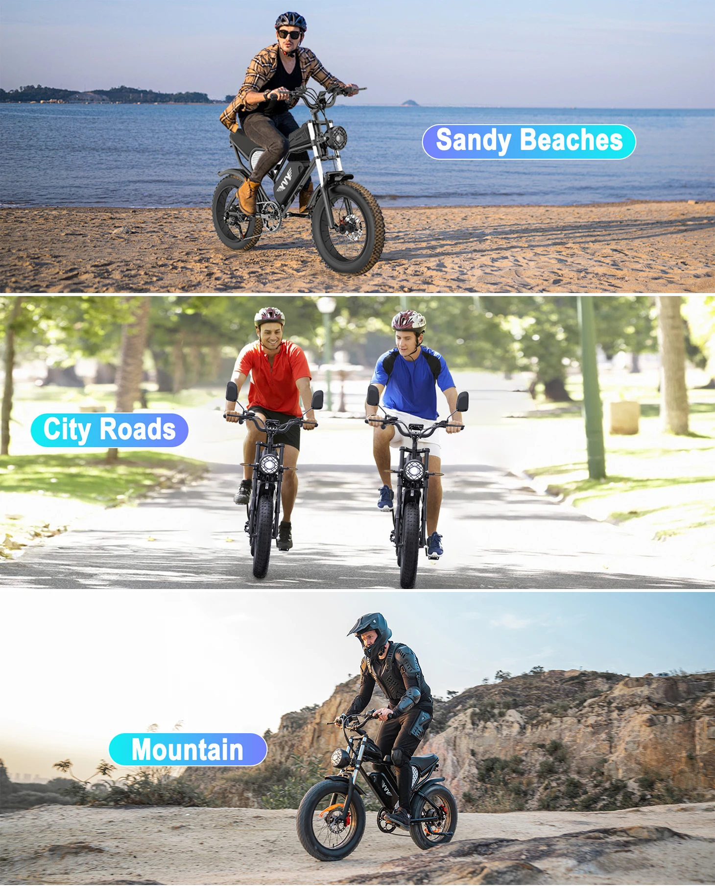 Consider the main application scenarios of electric bicycles, such as whether they are used for daily commuting, leisure cycling,or mountain off-roading, etc. Different uses have different performance requirements for vehicles. For instance, commuting may place more emphasis on range and comfort, while off-roading demands stronger power and good shock absorption.