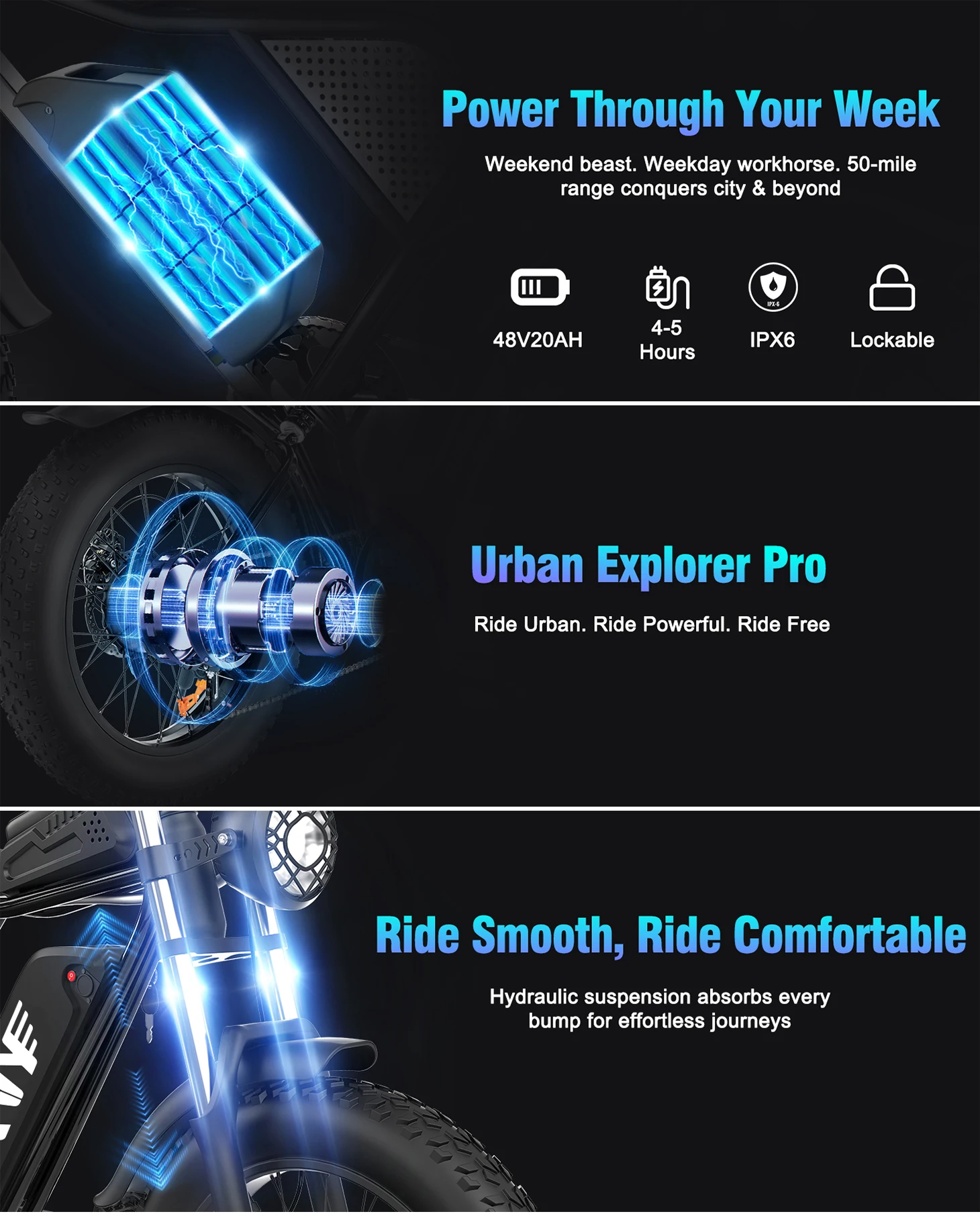 Tire: 20*4.0″ Fat tire