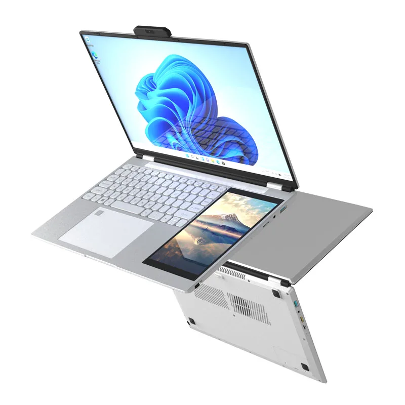 Factory Wholesale Intel N95 dual screens: 15.6 inches + 7 inches Win 11 Ram 16Gb 1Tb SSD Silver Gaming Laptop