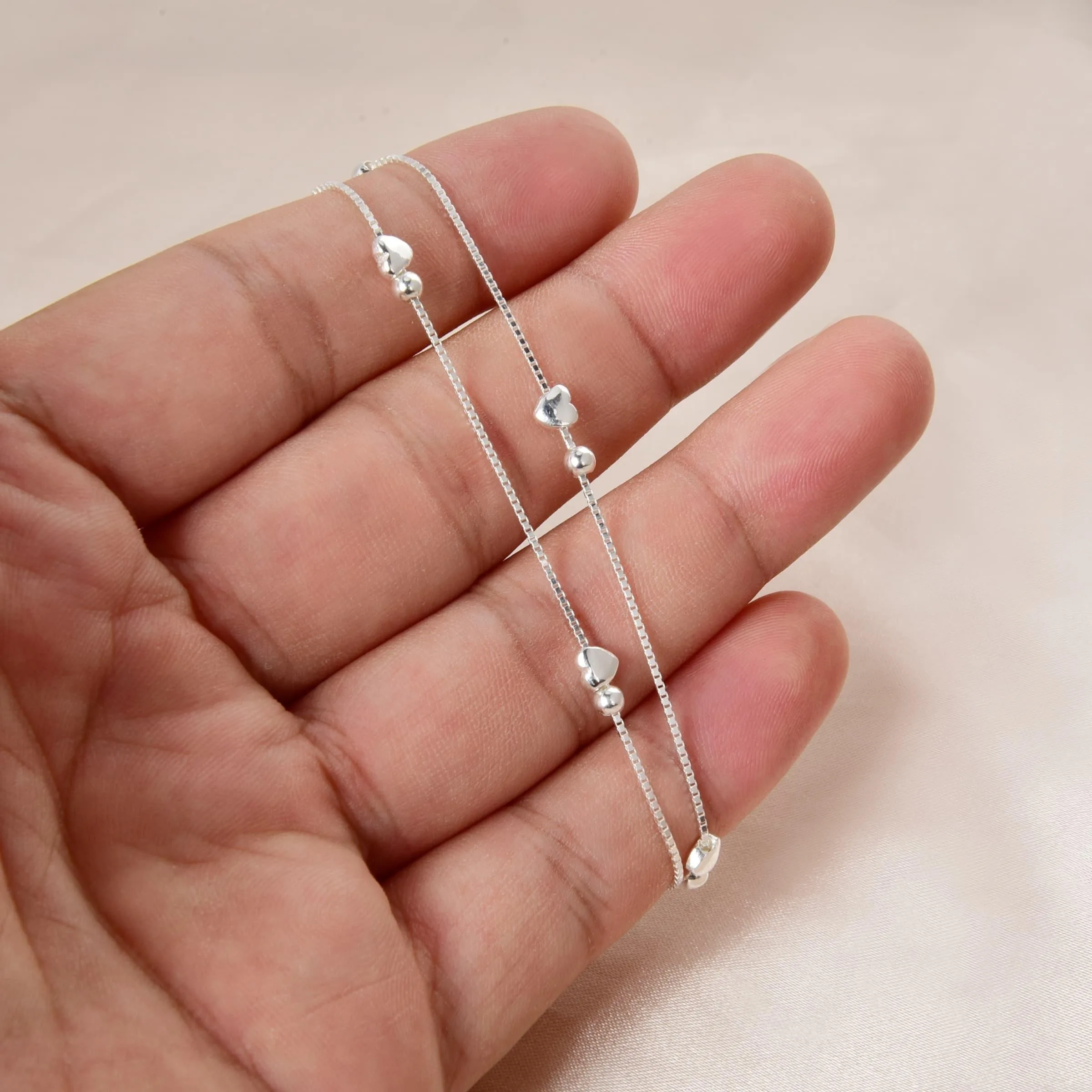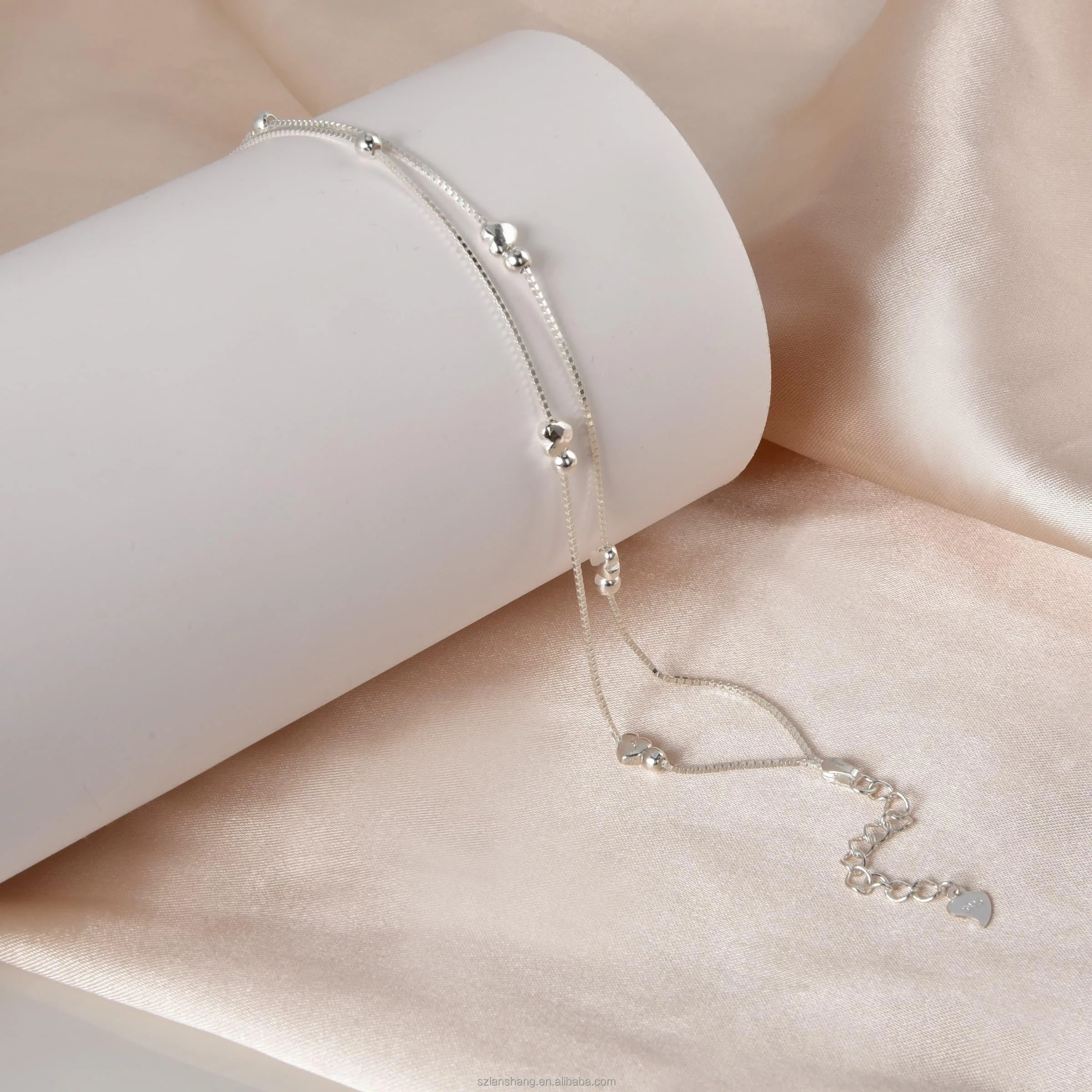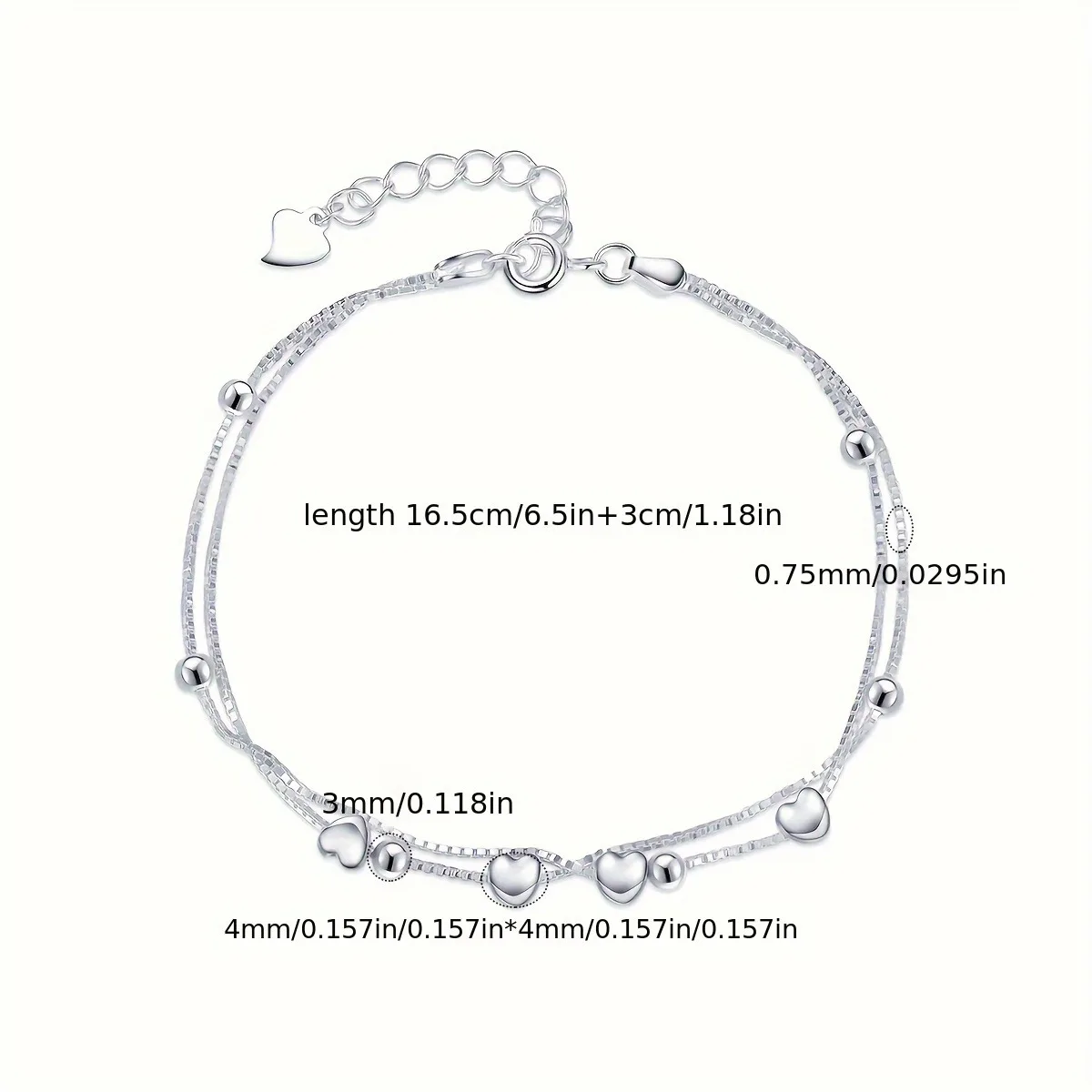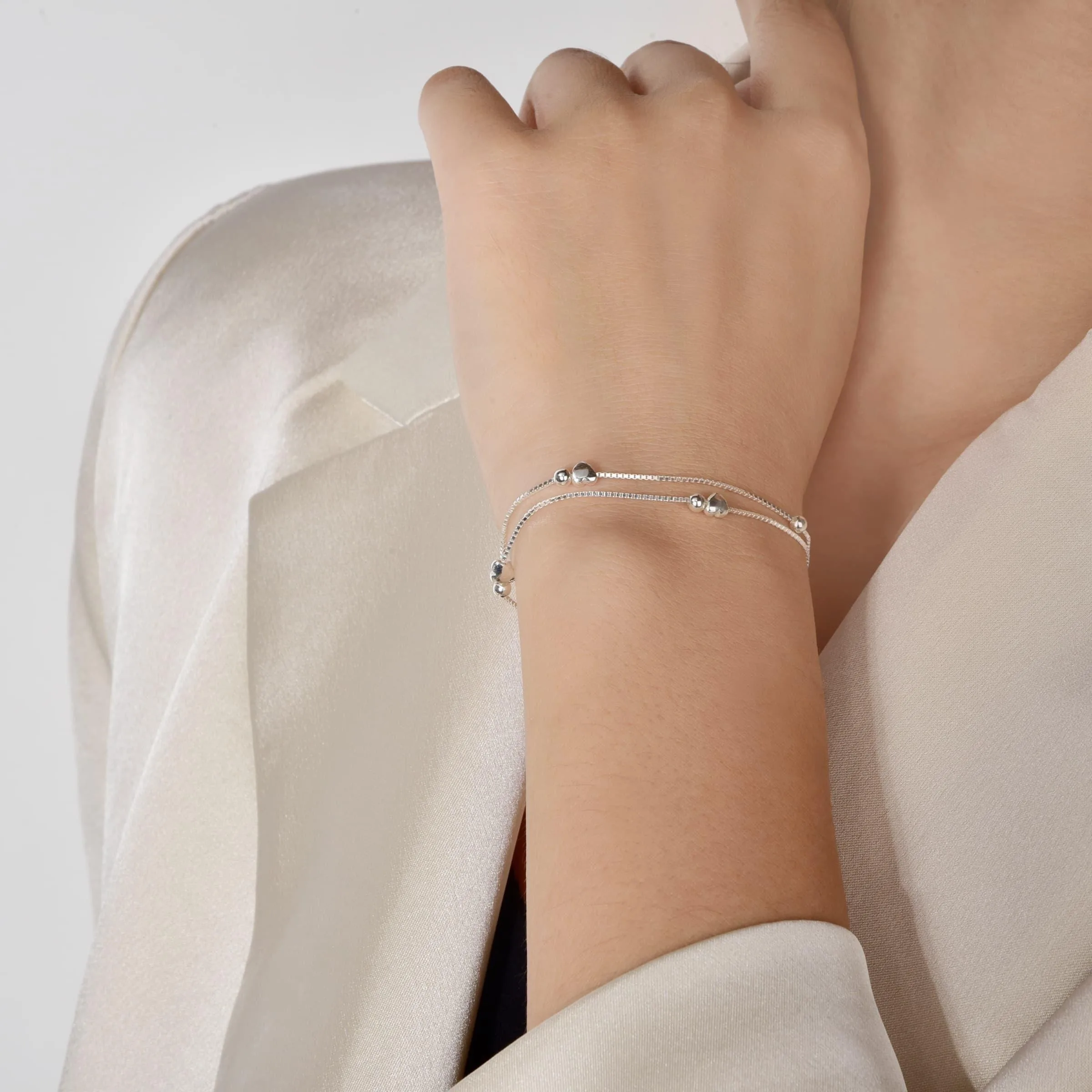 Lanshang S925 Pure Silver Heart-shaped Beads Bracelet Sphere Layered Chain Women’s Jewelry