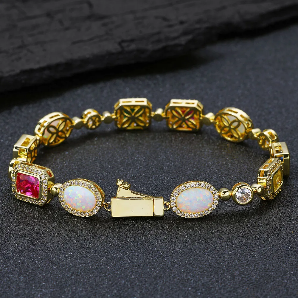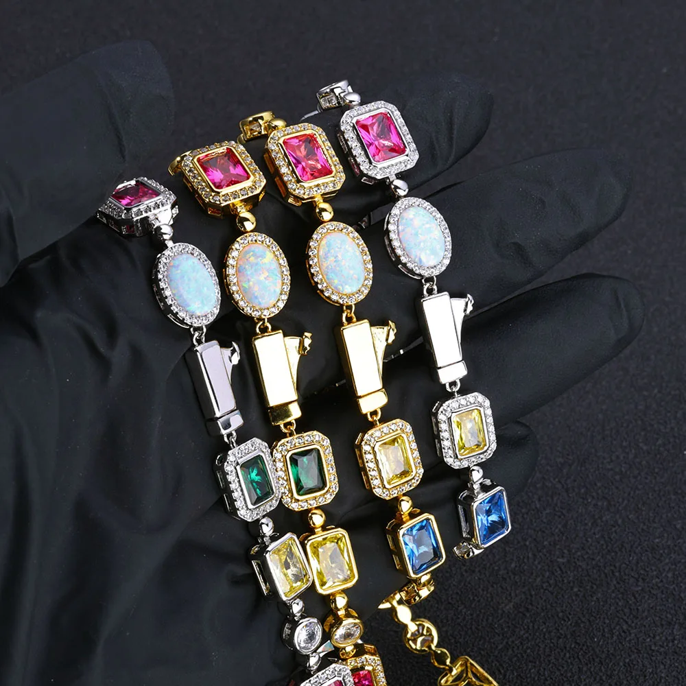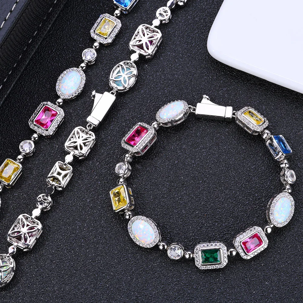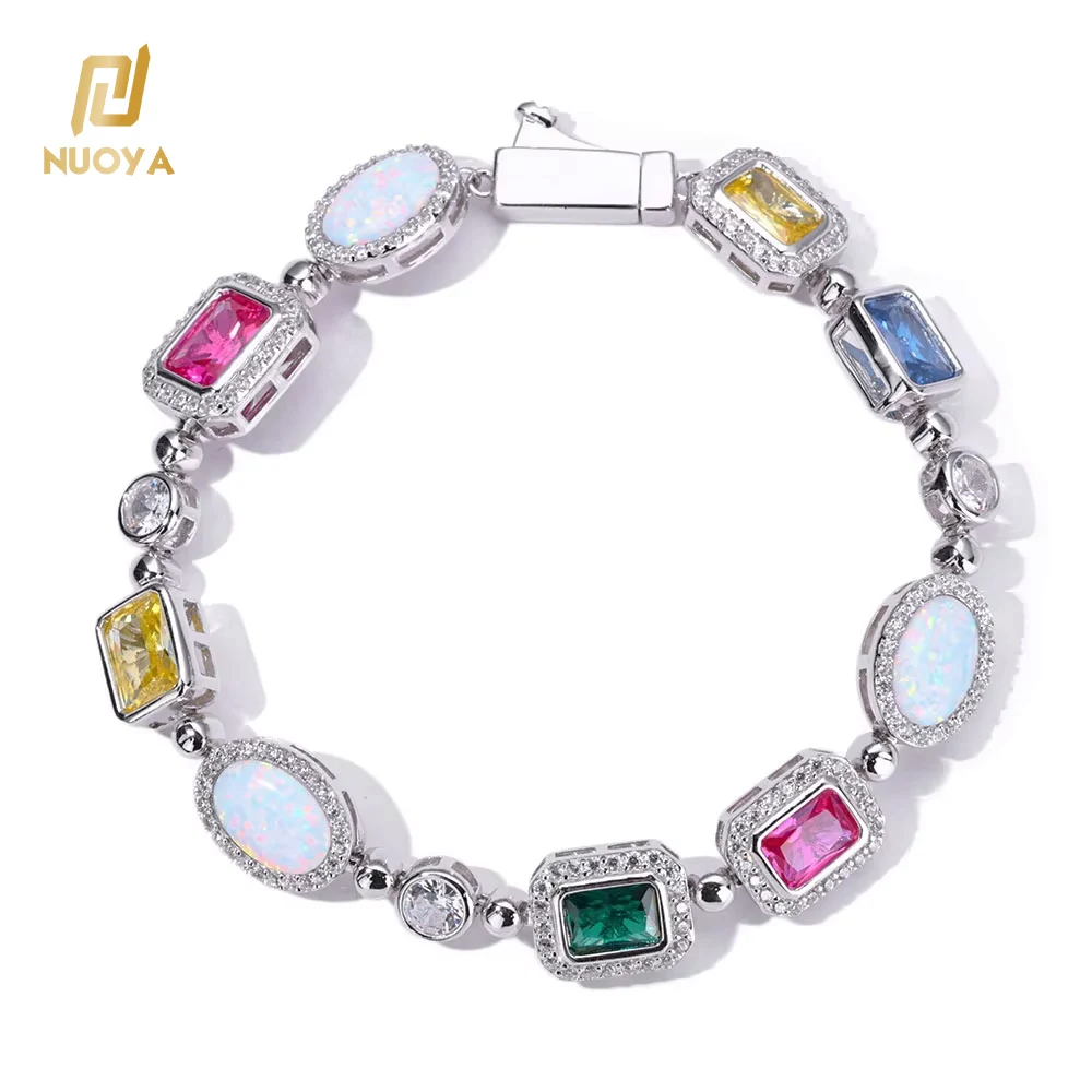 NUOYA Sparkly Geometric Gemstone Chain Women’s Jewelry White Gold Plated Brass With Opal Colorful Zircon Link Chain Bracelet