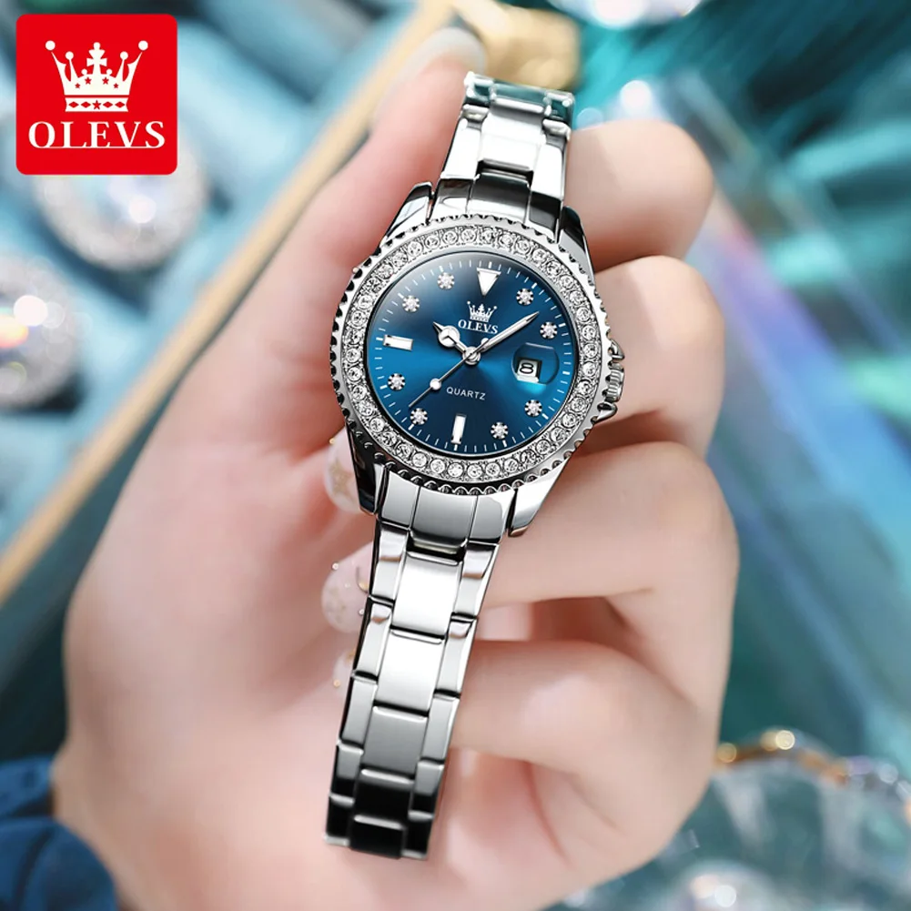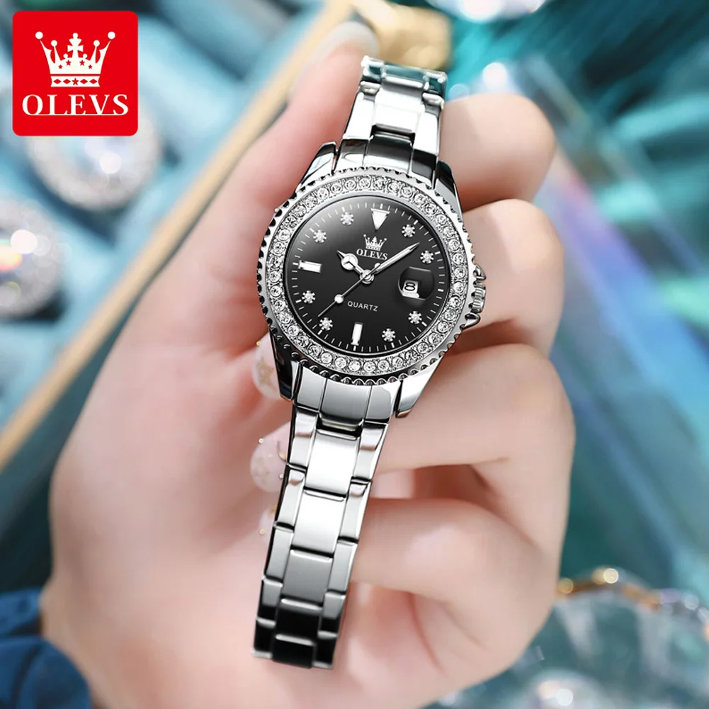 OLEVS 9945 Original Diamond Dial Quartz Watch For Women Fashion Elegant Ladies Stainless Steel Waterproof Women’s Watches Wrist