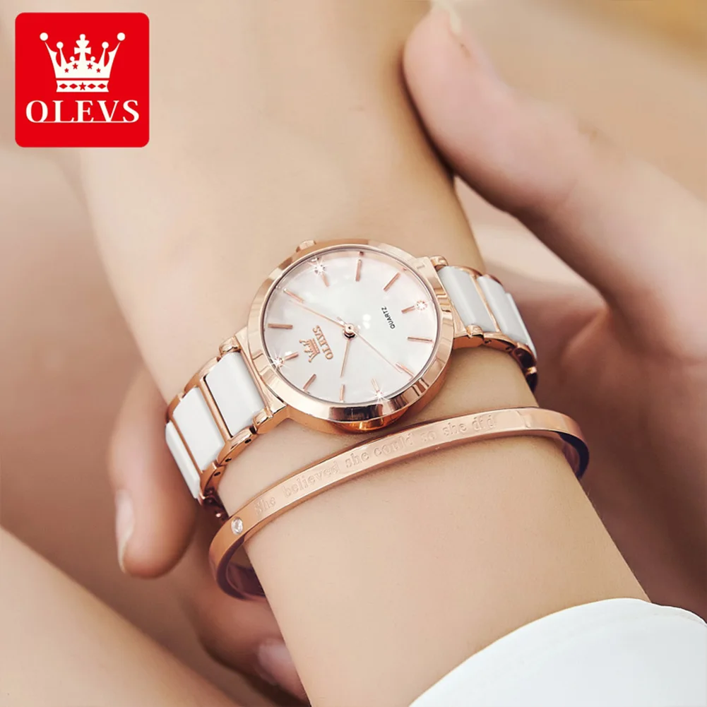OLEVS Brand 5877 Japan Movement Fashionable Business Watch Ladies Waterproof Ceramic Women’s Watches Quartz Wrist Watch
