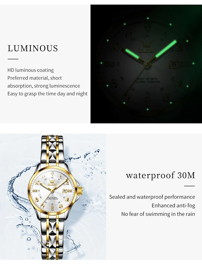 OLEVS Women’s Watches Fashion Luxury Stainless Stain Waterproof for Quartz Watches Top Brand Custom Rose Gold Ladies Wristwatch