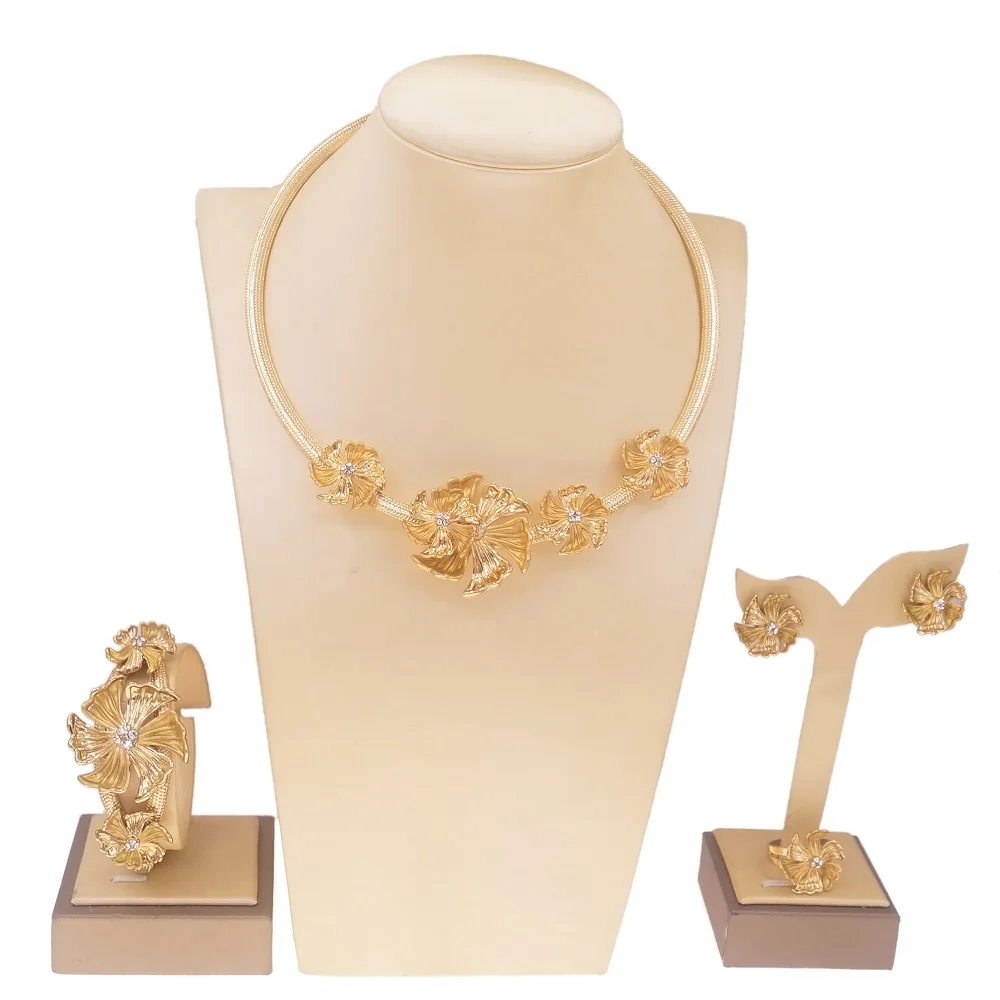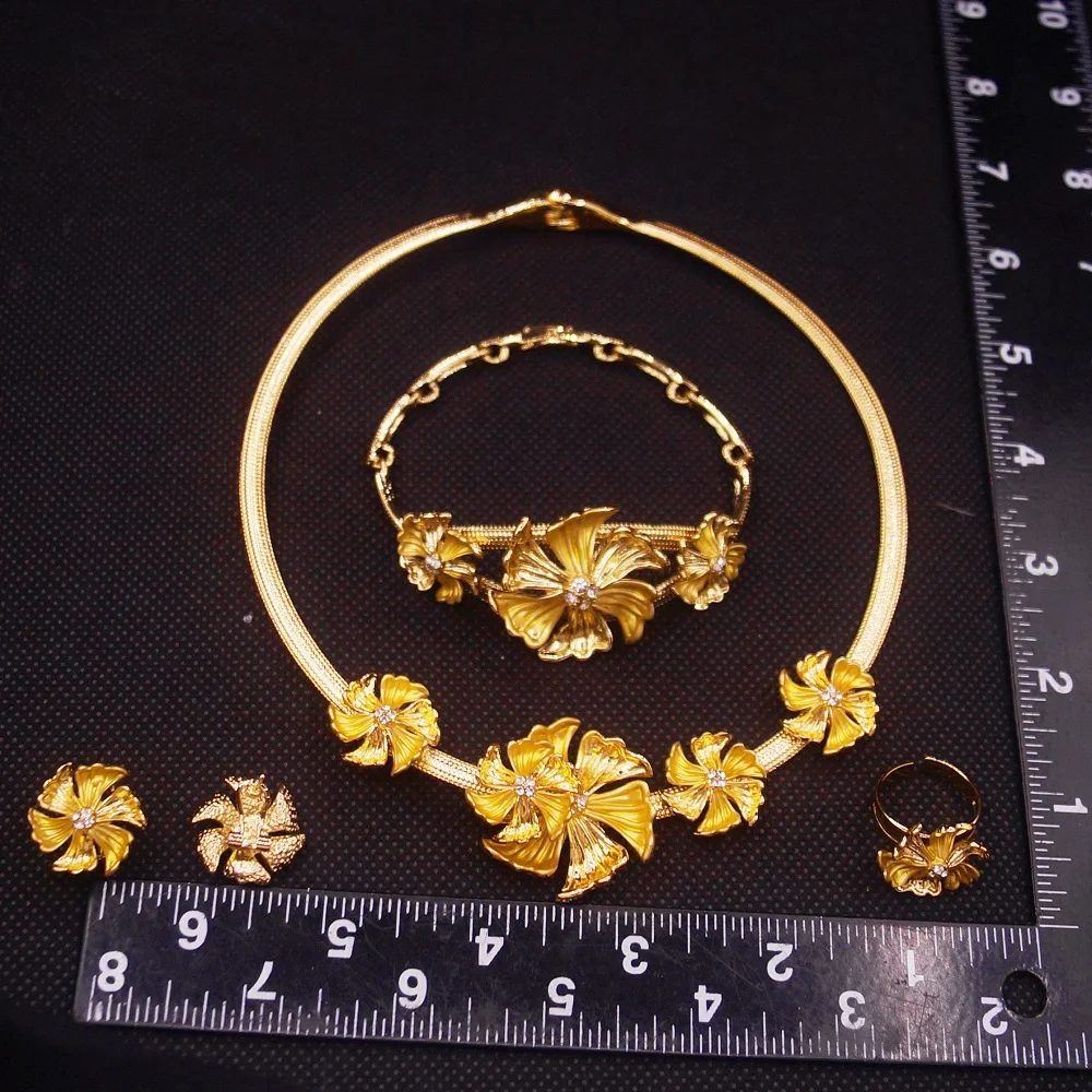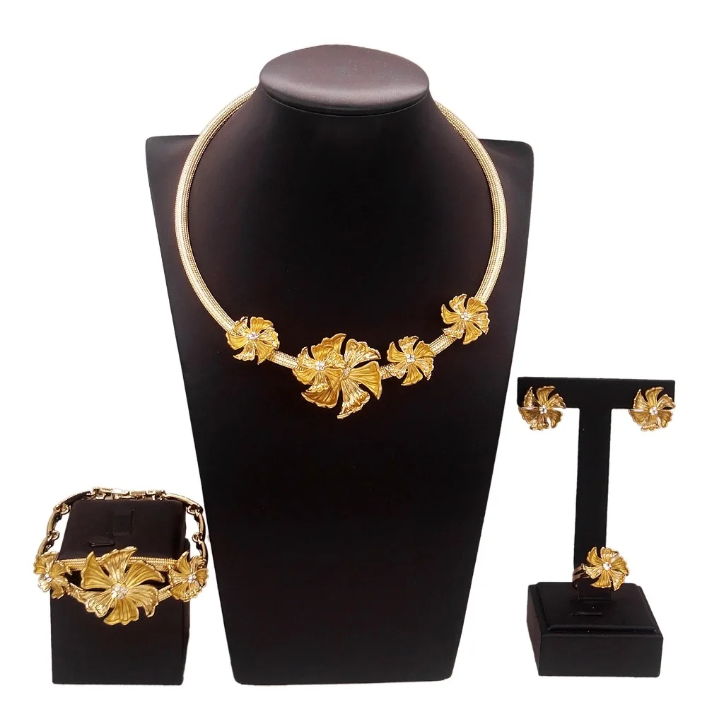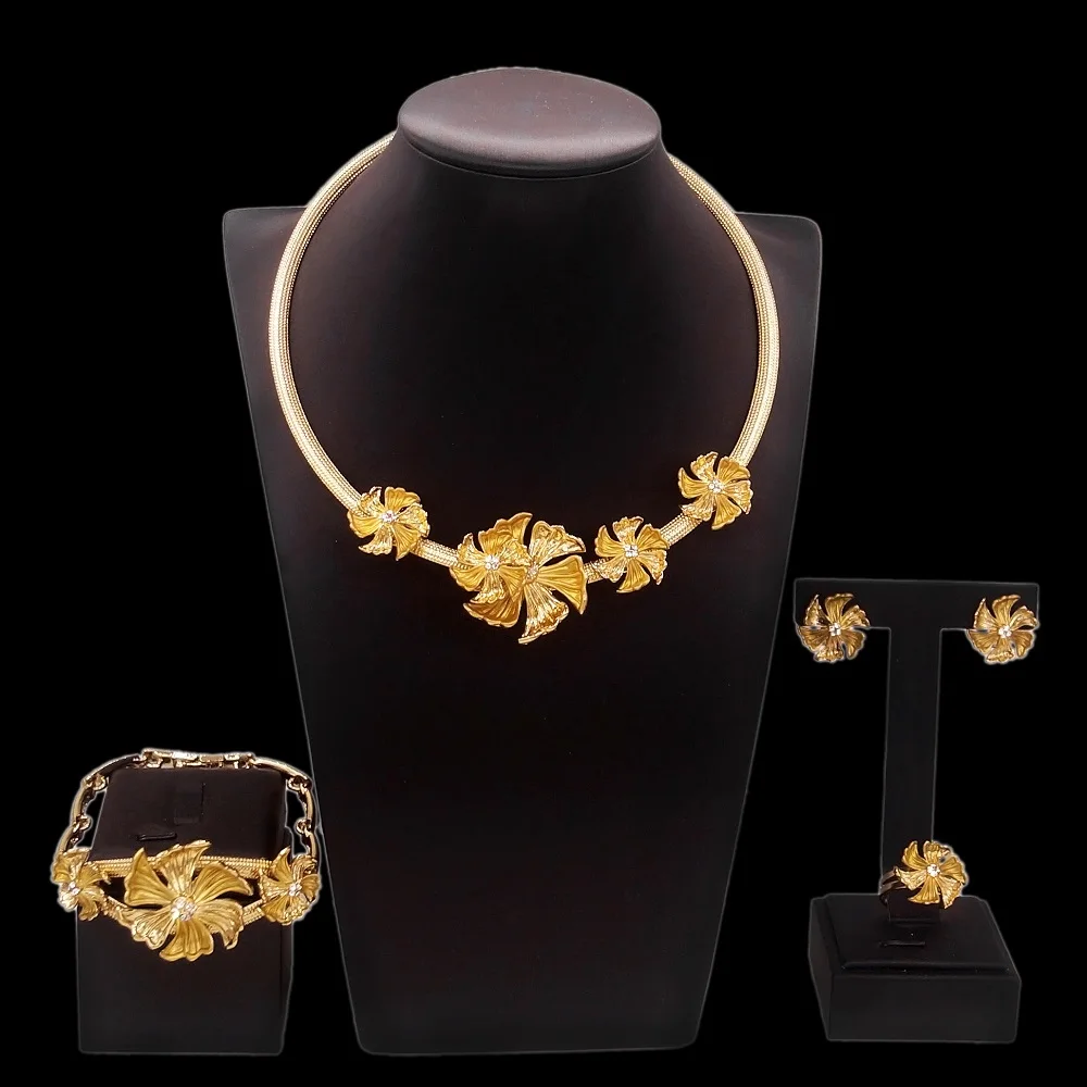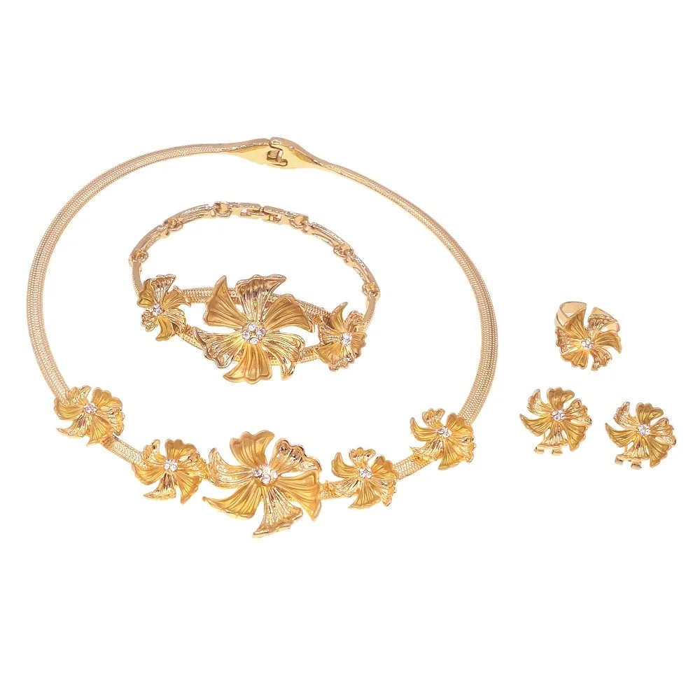 Zhuerrui Brass Gold Plated Women’s jewelry Set New fashion delicate flowers Dubai Italian wedding bridesmaid accessories